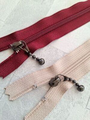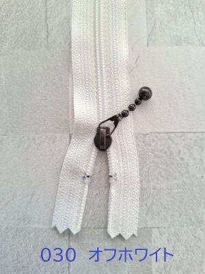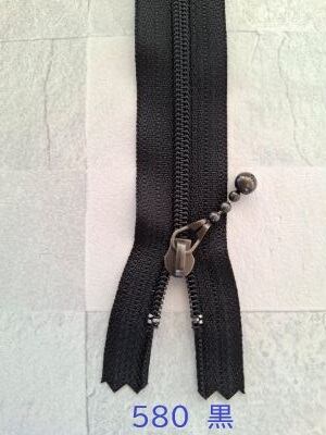 YKKのメタルファスナーです。引手はゆらゆら揺れるボールタイプ。